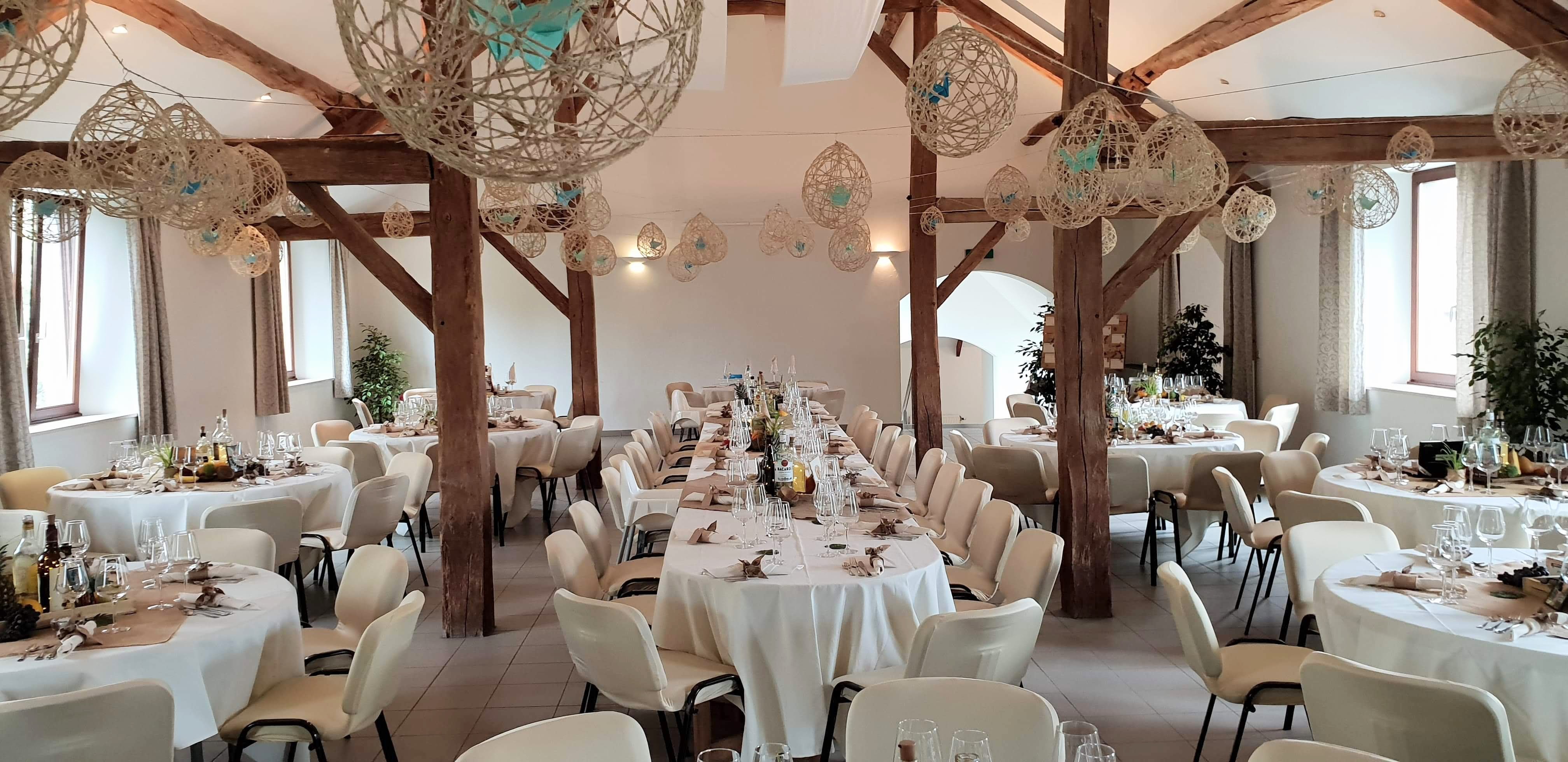 - 5 salles différentes : une pour chaque moment de la journée. Pas de déplacement de mobilier durant votre mariage.